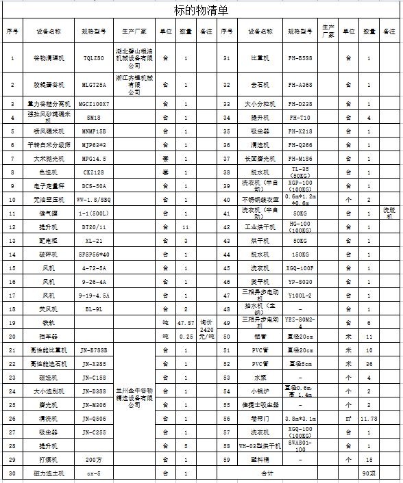 1、該標為安云鐵路征收六盤水市水城縣糧食購銷公司、六盤水市糧食轉運站、貴州省六盤水市進出口公司、貴州省畢節市農業生產資料公司資產中的設備、物資;以及安六鐵路征收楊貴林戶資產中洗衣設備、物資等。